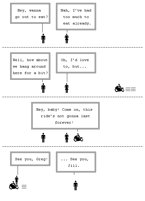 Anyways, I was bored one day, and I started playing with Word. And I eventually wound up with this piece, a text-based comic made with Courier New and Webdings: